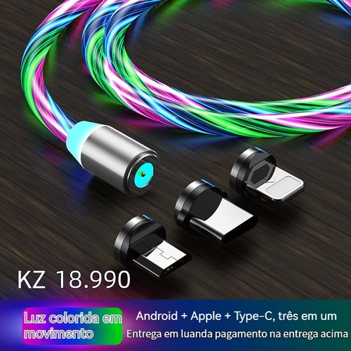 Cabo de absorção magnética de fluxo de dados com um cabo de carregamento triplo para Android Apple tipo-c